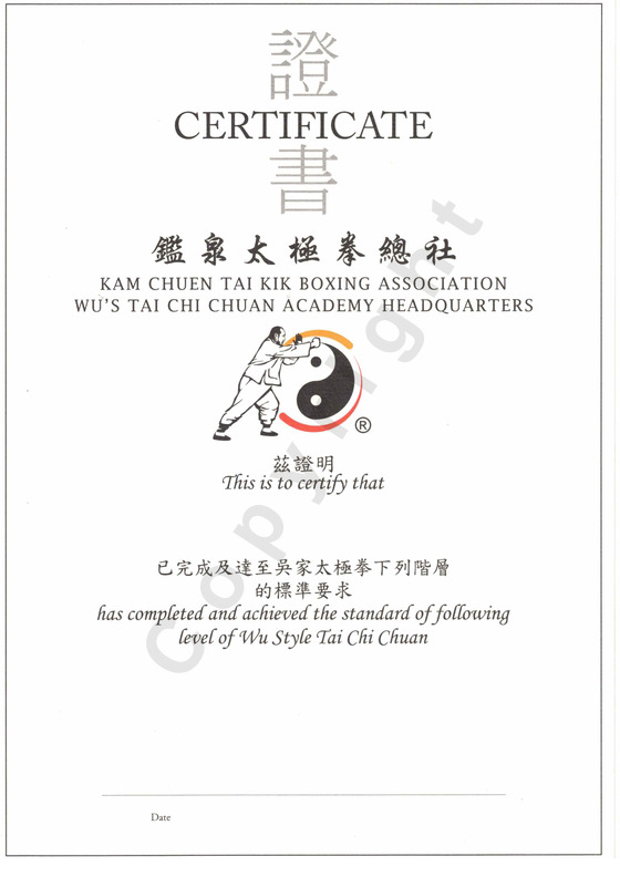In 2009, Wu's Tai Chi Chuan taught at our Academy was included in the Chinese Wushu Duanwei System. Students can apply for relevant examination and obtain Duan accordingly.